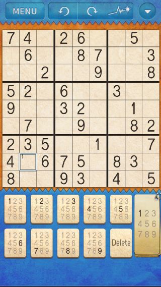 基本ルールは、タテ・ヨコ1列と3×3の正方形の枠内に1~9の数字がダブらないように入れていくというもの。