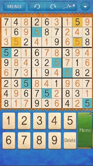 入力済みの数字をタッチすれば、同じ色の数字が色付けされるのでとても便利!