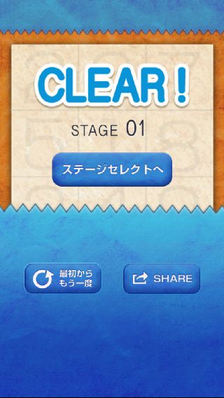 全てのマスを正しい数字で埋める事ができれば、ステージクリア!