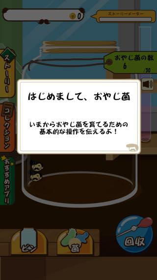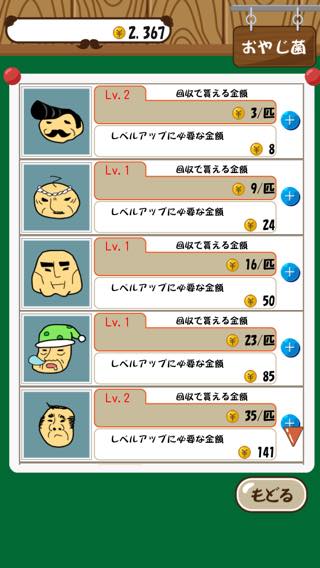 回収して得たお金を使って、おやじ菌のレベルアップをしたり、新しい種類の菌を買うことができる