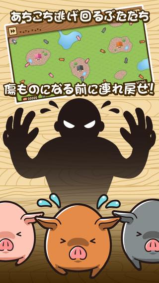 画面上を動き回る3色のぶたたちをタップし