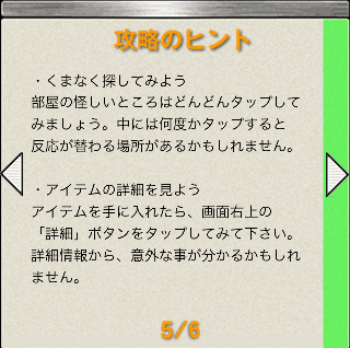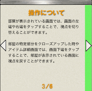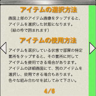 移動は画面左右をタップ、上部のアイテム画面で右上の詳細ボタンを押すと詳細画面へ。