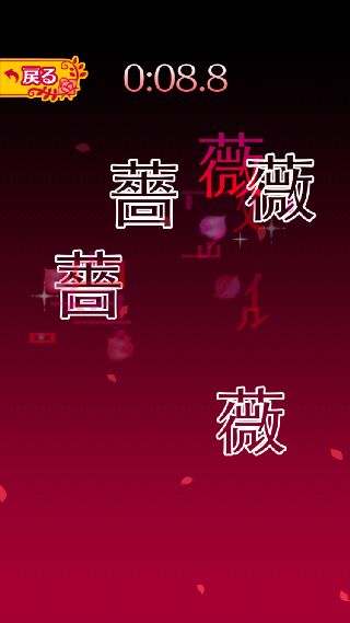 「薔薇」の文字が表示される場所はランダムで、2本指で同時に動かしていかなくてはいけないので意外と難しい。
