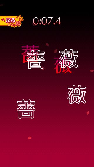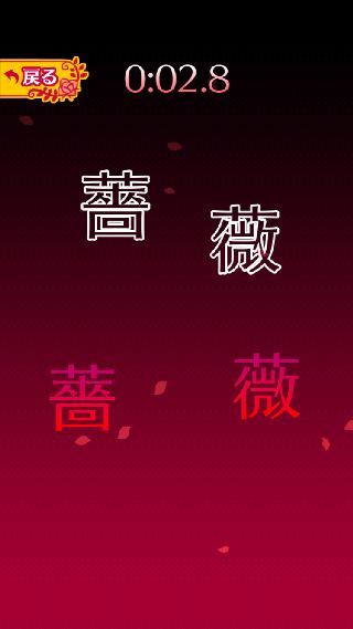 スタートすると、画面の左半分に「薔」、右半分に「薇」の文字が表示される。