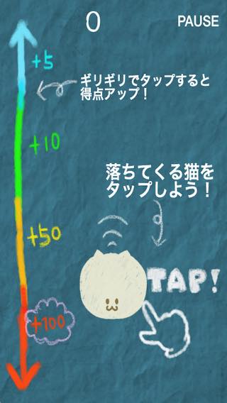 このアプリは、ねこをタップして落とさないようにするシンプルなゲームだ。