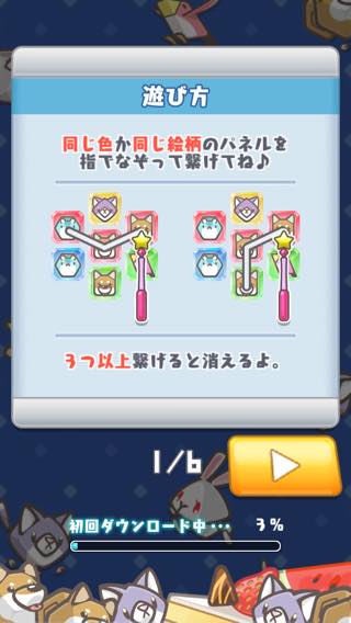 色か動物の同じパネルをなぞって3つ以上つなげると、パネルが消える。