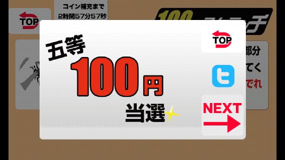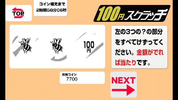 「100円スクラッチ」は、もっと気軽に1回100コインでプレイできる。