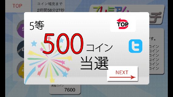 クジを購入するのに必要なコインは3時間に1回、5000コインが貰える。