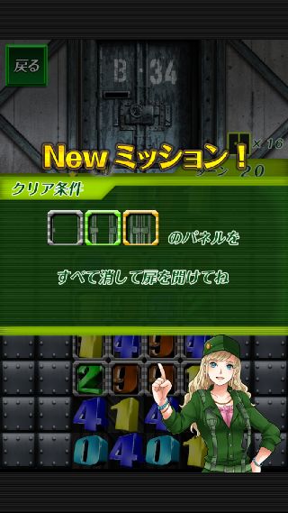 ミッションは指定されたパネルを消す「開錠」や、指定されたアイテムを画面下まで落とす「調達」など様々なものが用意されている。