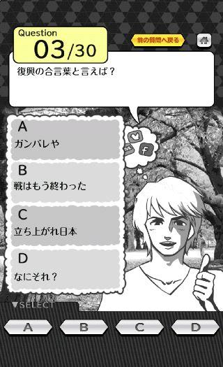 質問の答えをA~Dの4つの中から選んで、下の回答ボタンをタップしよう。