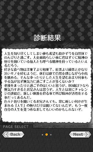 診断結果は詳細な説明が見られ、一度開放した診断結果はトップ画面の「診断結果一覧」からいつでも見る事ができる。