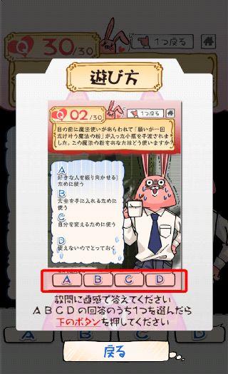 質問の答えをA~Dの4つの中から選んで、下の回答ボタンをタップしよう。
