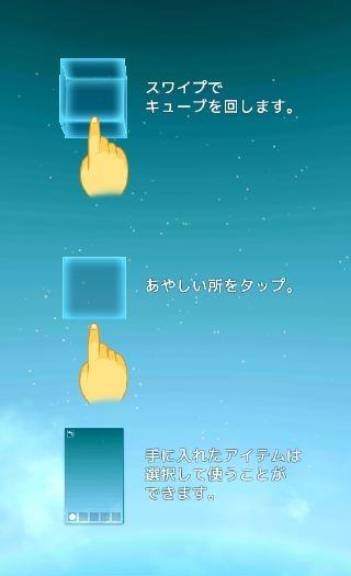 キューブを回しながら上下左右前後の6面に仕掛けられた謎を解いていく、リアルタイム3Dを使用した新感覚のキューブ型脱出ゲーム。