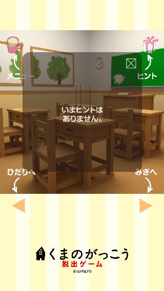 脱出のためには教壇にある絵本を完成させる必要があり、いろんな場所に隠された10枚の「カード」が必要になる。