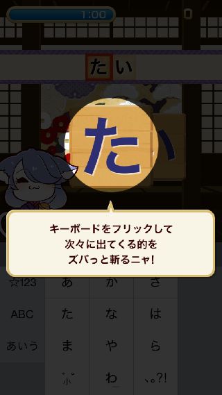 キーボードをフリックして、次々に出てくる的をスパっと斬っていこう!