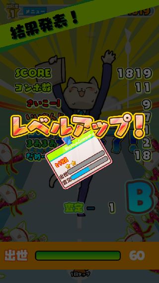 高いスコアを出し、出世ポイントを溜めてレベルを上げよう。