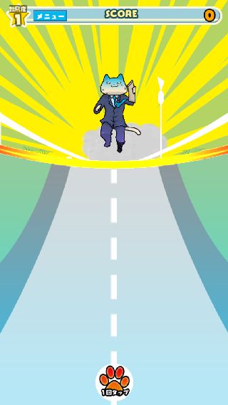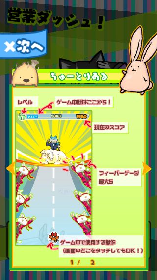 「営業ダッシュ」は、画面手前から現れる障害物をタイミング良くボタンを押してジャンプで避けていく。