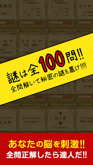全100問の謎を解いた時、真実の扉が開かれる…。