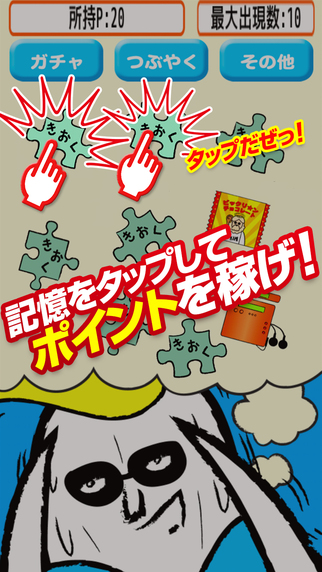 一定時間ごとに出現するタコダさんの記憶を集めて、ガチャを引け!