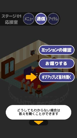 脱出ゲーム初心者にもオススメの難易度設定で、どうしても分からない時は「通信」メニューから幹事に答えを聞く事もできる。