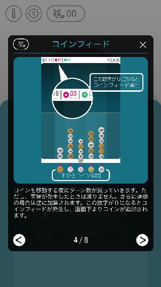 ただし一度移動させる度にターン数が減っていき(両替できた場合はそのまま)、規定のターンで下から新たなコインが追加されてしまう。