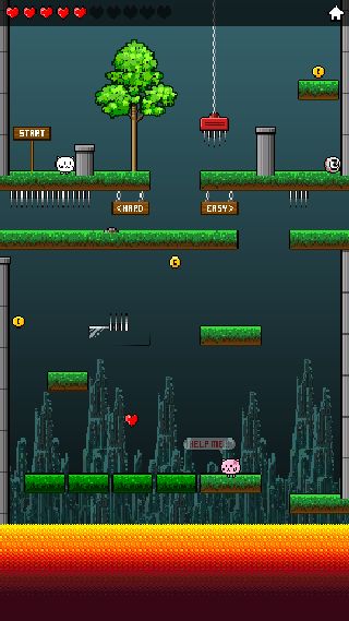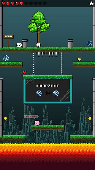 壁にぶつかると引き返す習性をうまく利用して、画面タップでジャンプして彼女の元へ向かおう。