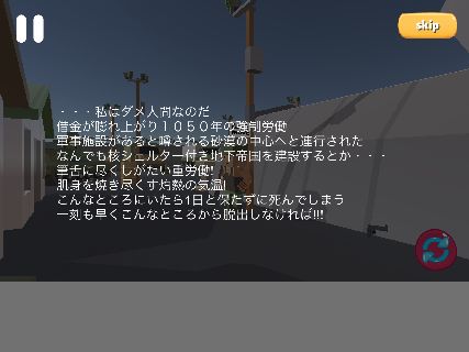 脱出ゲーム 怒りの脱出 無料 0 評価する 送信する 新感覚な脱出ゲーム登場!!! 1050年の強制労働から脱出せよ!!! 超お手軽、隙間時間にプレイ可能!!! ※ 公開停止 砂漠のど真ん中の軍事施設が舞台の脱出ゲーム。 間違った選択は即ゲームオーバー!色んな行動を試しながら、手がかりを探していこう。 基本操作はタップのみで、移動は右下のボタンで画面を切り替える一方通行になっている。 軍事施設の中は常に危険と隣り合わせ!? アイテムを駆使して、施設からの脱出ルートを探し出そう! 攻略その1 攻略その2 攻略その3