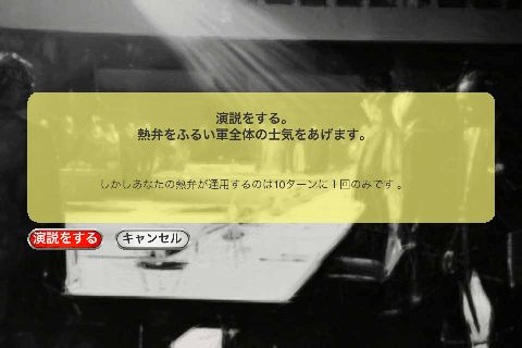 『演説をする』は10ターンに1回全ての兵士の士気を上げられる。重要地点を占領されて士気が大幅に下がった時などに使用したい。