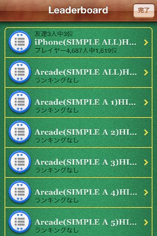 「GameCenter」に完全対応。ランキングはもちろん、アチーブメントも16個用意されている。