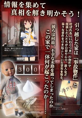 家の中を探索して手がかりやアイテムを探し出し、事故物件から無事に脱出しよう!