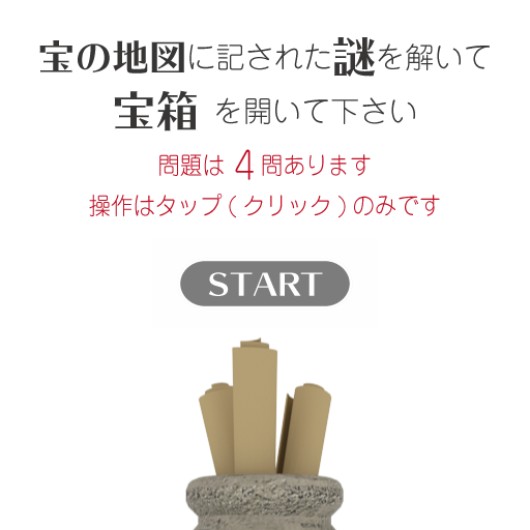 宝の地図に記された謎を解いて、宝箱を開けるのが目的の謎解きゲーム。