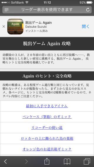 アプリ内から公式の攻略ページに飛ぶ事ができ、ヒントと完全攻略を見る事ができる。