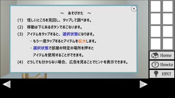 ヒント機能も用意されているので、脱出ゲーム初心者にもオススメ!