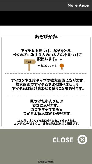 10人の小人を探すのが目的の、オーソドックスな脱出ゲーム。