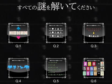 スタート時にはQ1~Q6を任意で挑戦でき、正解するごとに新しい問題が解放されていく。