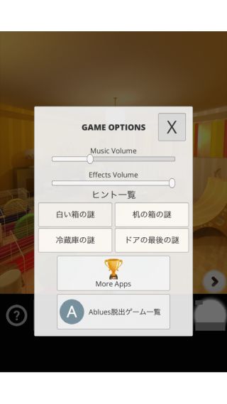 左右2面の部屋が舞台になっていて、移動は左右の<>ボタンで行う。