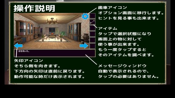 基本操作はタップのみで、移動は画面内の矢印ボタンで行う。