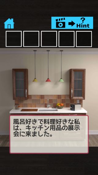 広いキッチンを隈なく調べて、謎を解き明かして脱出しよう!