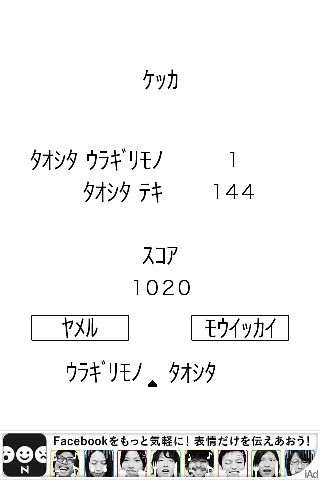 無数の「テキ」の中のたった1人の「ウラギリモノ」をビームで倒すのが目的のおバカ系ゲーム。