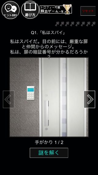 基本操作はタップのみで、各問題は左右のボタンで手掛かりを切り替えて見る事ができる。