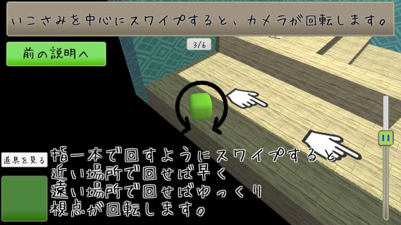 「いこさみ」という四角い生き物が3Dの建物の中を見まわして歩き回る少し違う形の脱出ゲーム!