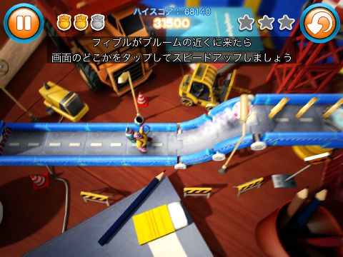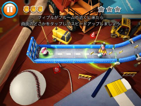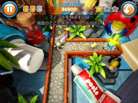 最初に主人公のフィブルを引っ張って、離すと転がっていく。