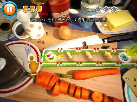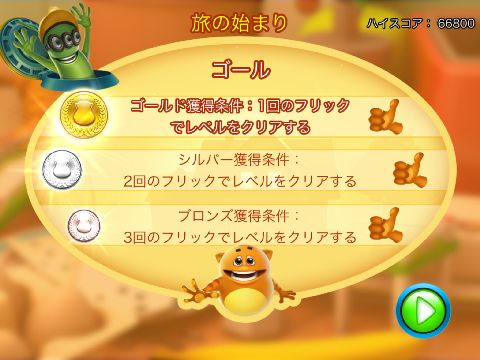 各ステージは3段階の条件があり、基本は最初の1回のフリックでゴールを目指すのが目的となる。