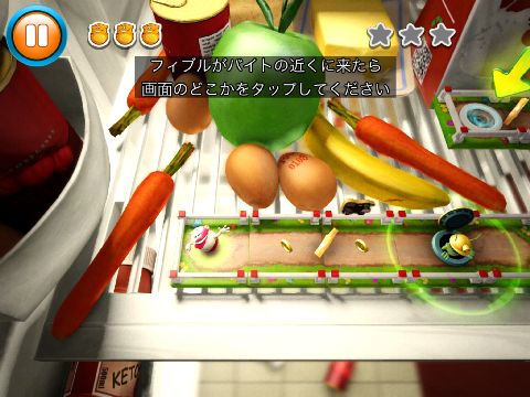 最初に登場する『バイト』は、フィブルが近くに来たタイミングでタップするとマンホールで上に跳ね飛ばしてくれる。段差があるステージでは必ずお世話になるキャラクターだ。