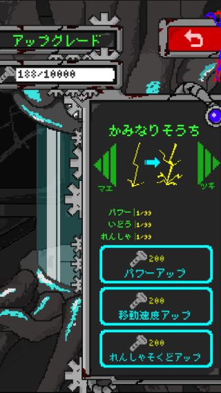集めた素材を使って、カミナリ装置のアップグレードや様々なオプションを装備しよう!