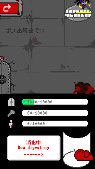 倒した敵は右上の口にドラッグする事で、右下の胃袋で消化して素材にする事ができる。