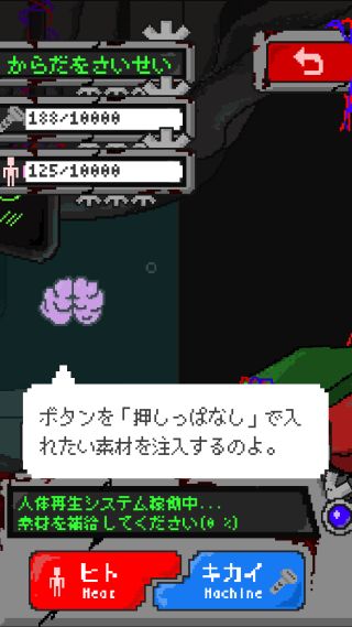 『ヒト、キカイ』どちらの素材を注入するかで、再生する身体のパーツが変わってくる。