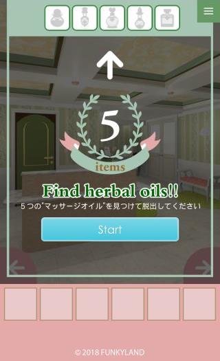 素敵なエステサロンの中でアイテムを探して謎を解き、部屋に隠された5つのマッサージオイルを集めて脱出しましょう。