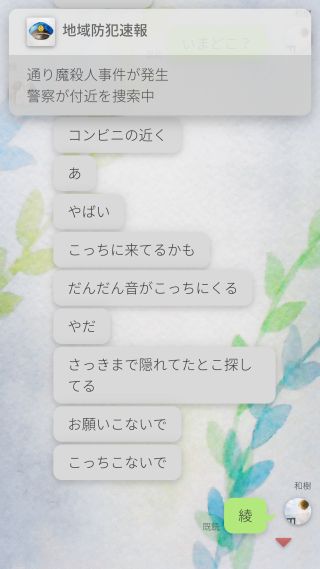 「このチャットの向こう側で、彼女は殺人鬼に追われている。」