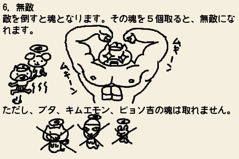 敵を倒した時に出てくる魂を集めると無敵になる。